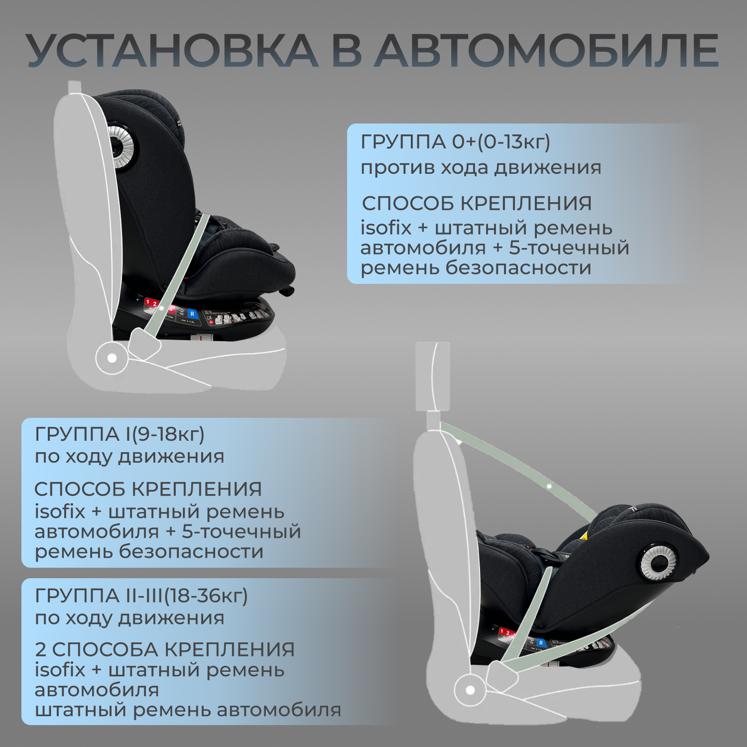 - ISOFIX+ штатный ремень автомобиля