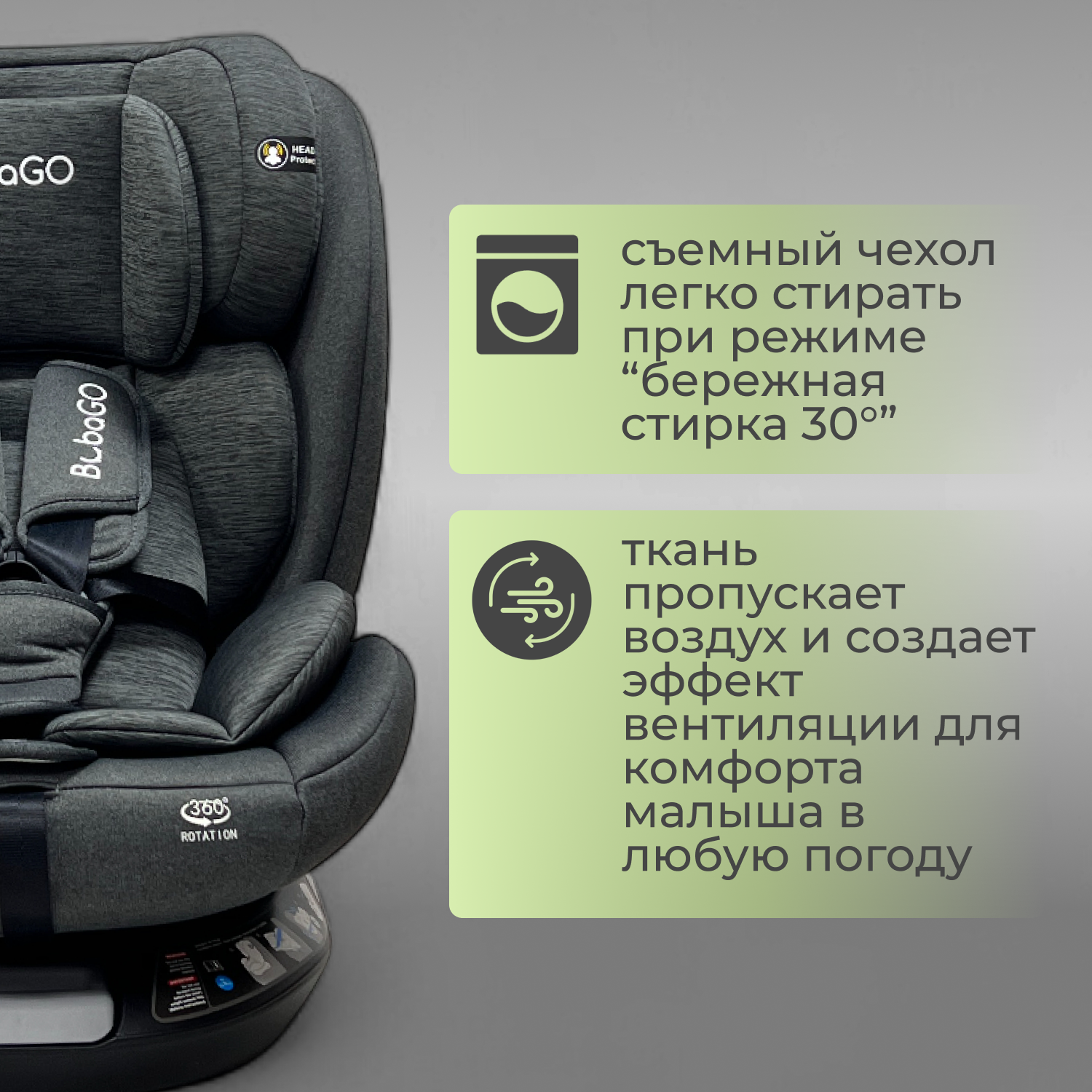 - Ткань автокресла отлично пропускает воздухи обеспечивает его циркуляцию, предотвращая перегрев в жаркое время года.