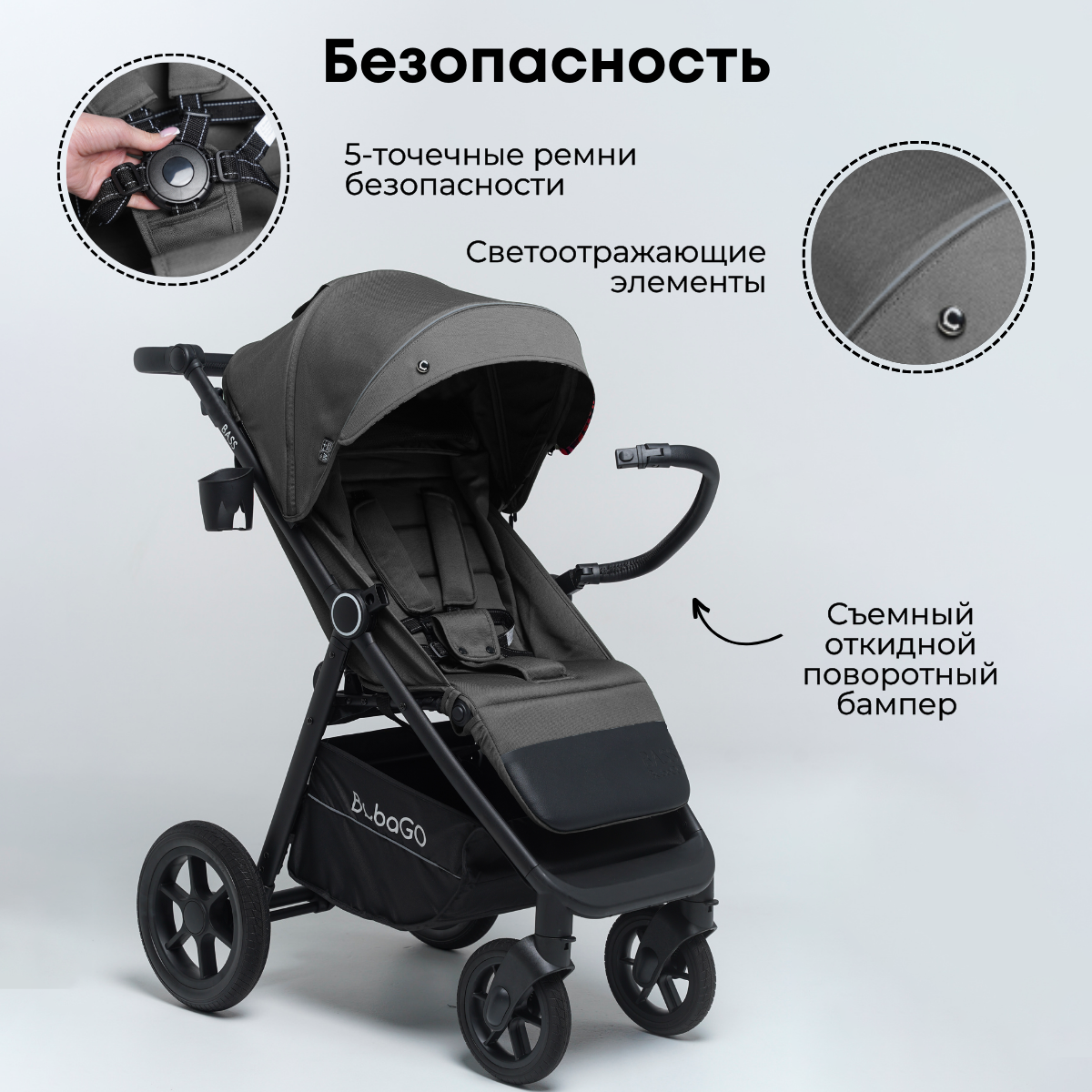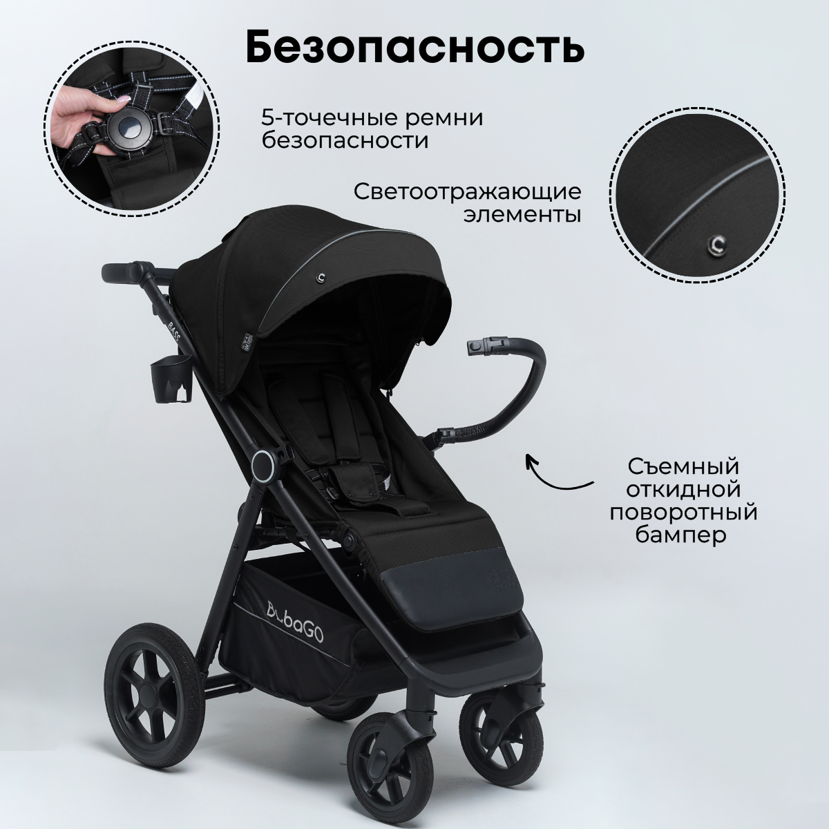 Безопасность в колясках BubaGO, в том числе и у коляски BASS, на высшем уровне!