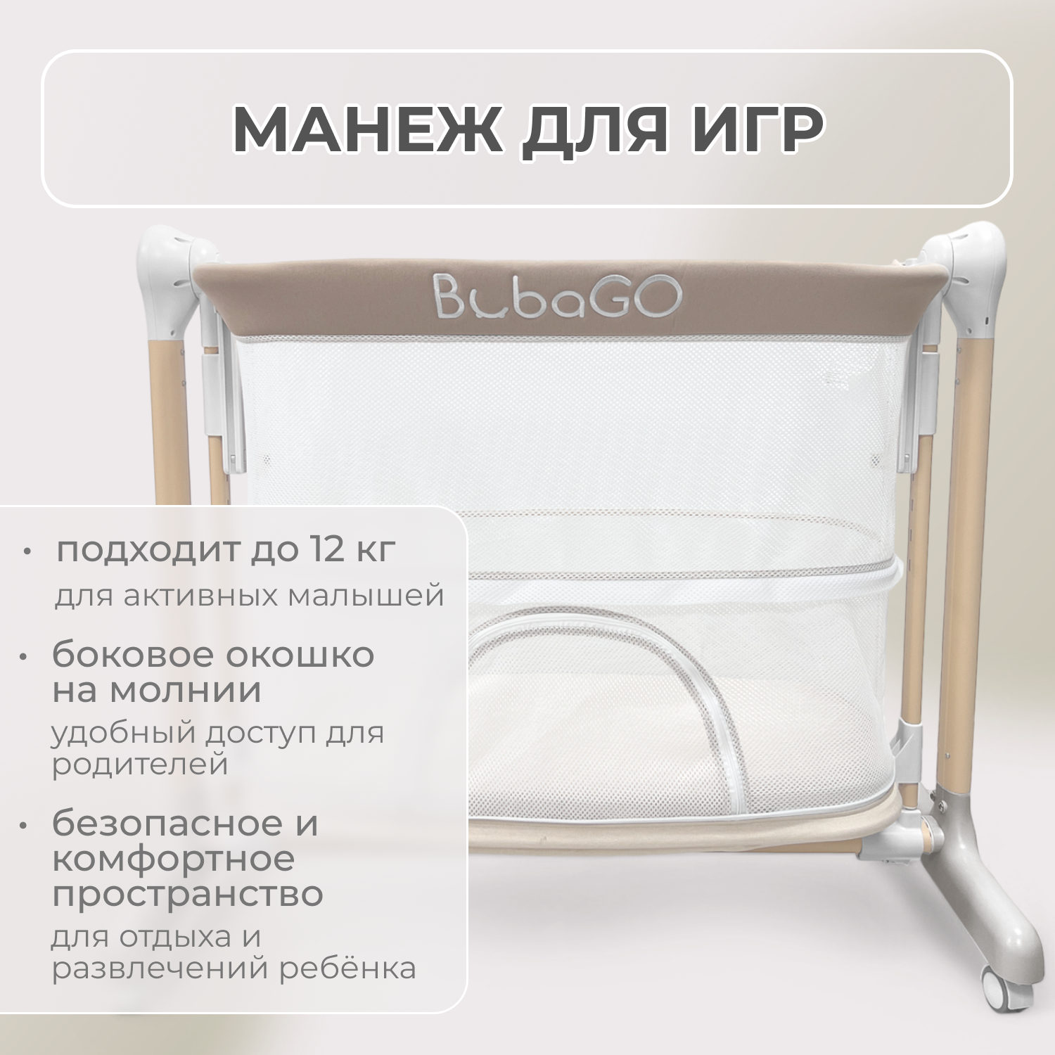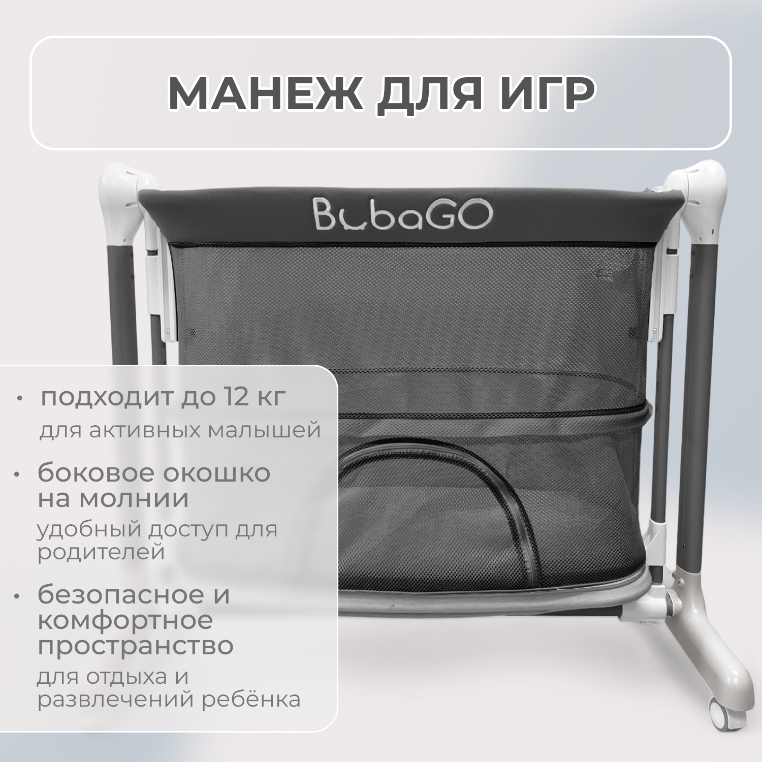 Когда ребёнок подрастёт, колыбель трансформируется в манеж с боковым окошком на молниидля лёгкого доступа и весёлых игр.