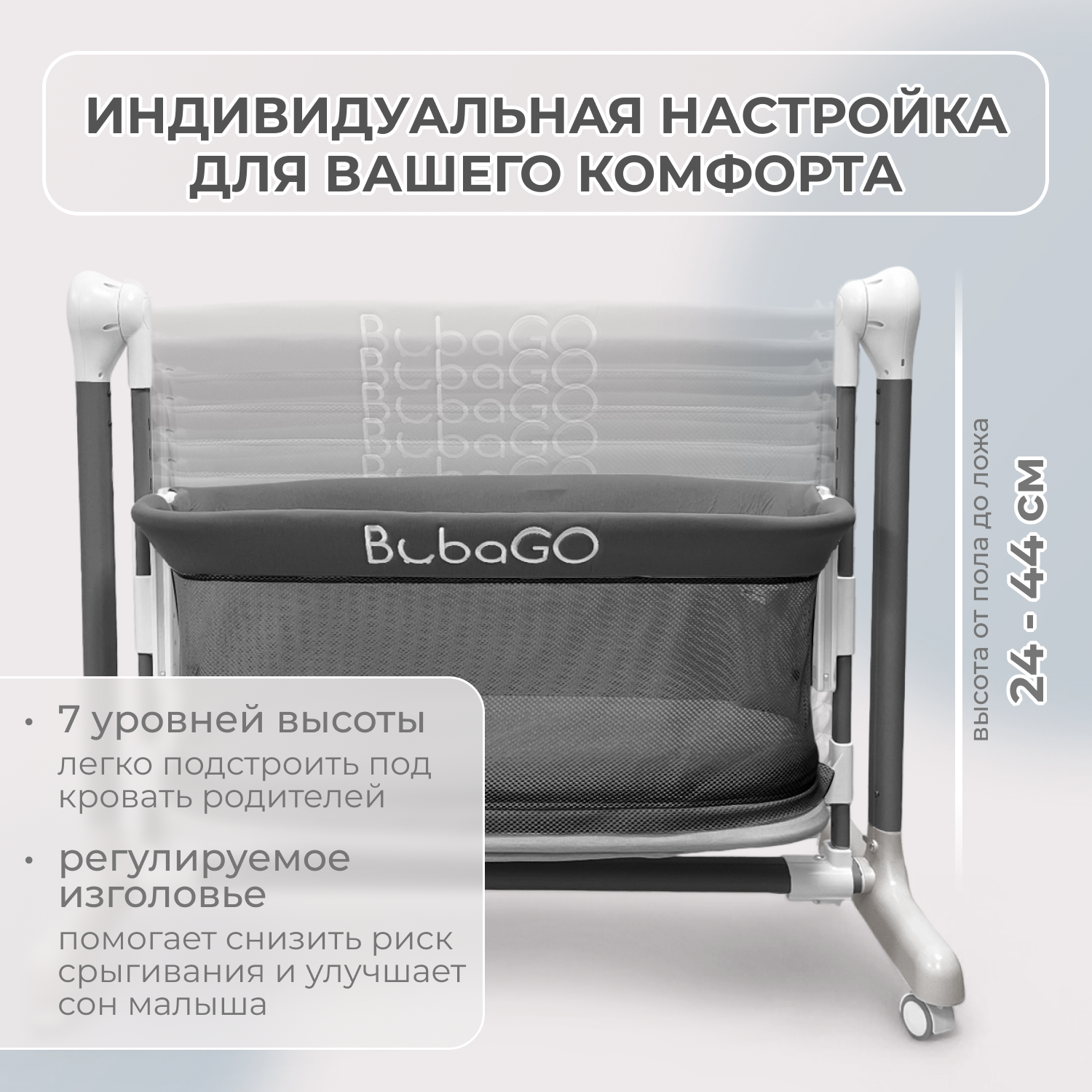 - 6 уровней регулировки высоты— подходит к большинству родительских кроватей.