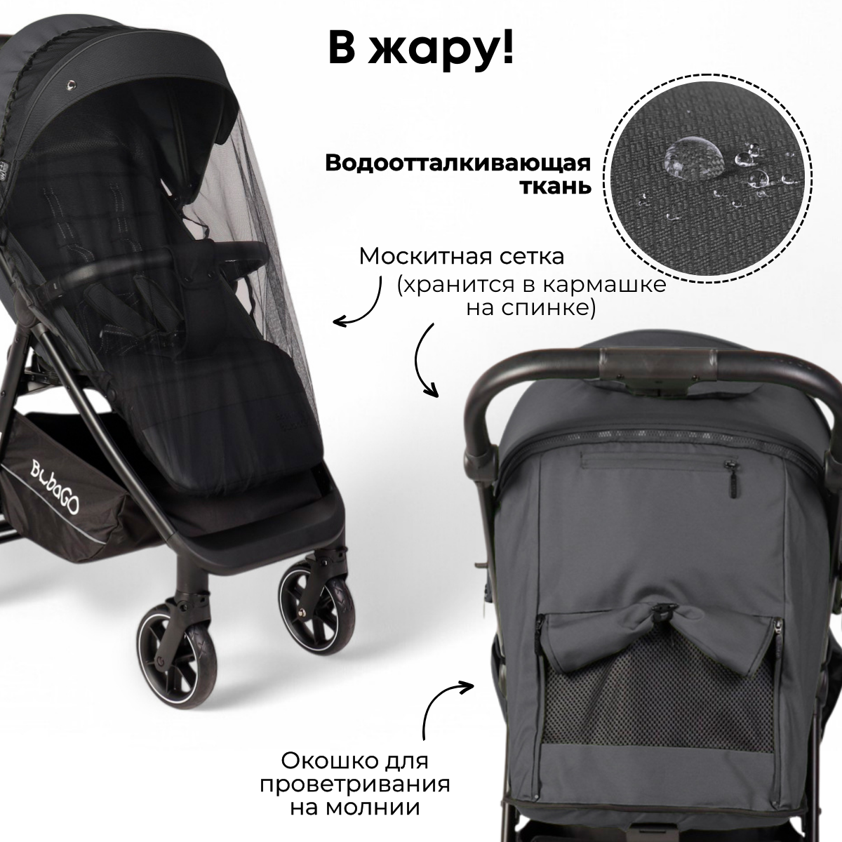 В холодную погоду малыша надежно защитит теплый чехол на ножки, дизайн которого также обновлен в модели 2025. За комфорт в летнюю жару отвечает проветриваемая спинка с москитной сеткой и защитой от выпадения малыша, и москитная сетка для самой коляски.