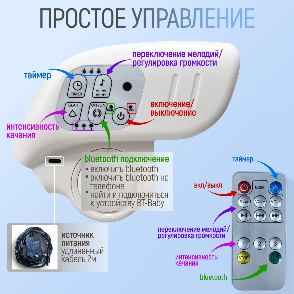 Мягкое укачивание в 3 продуманных режимах