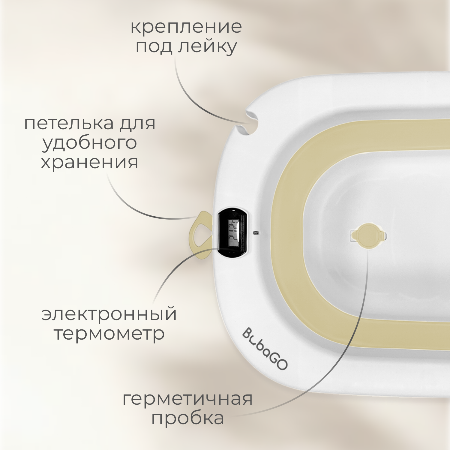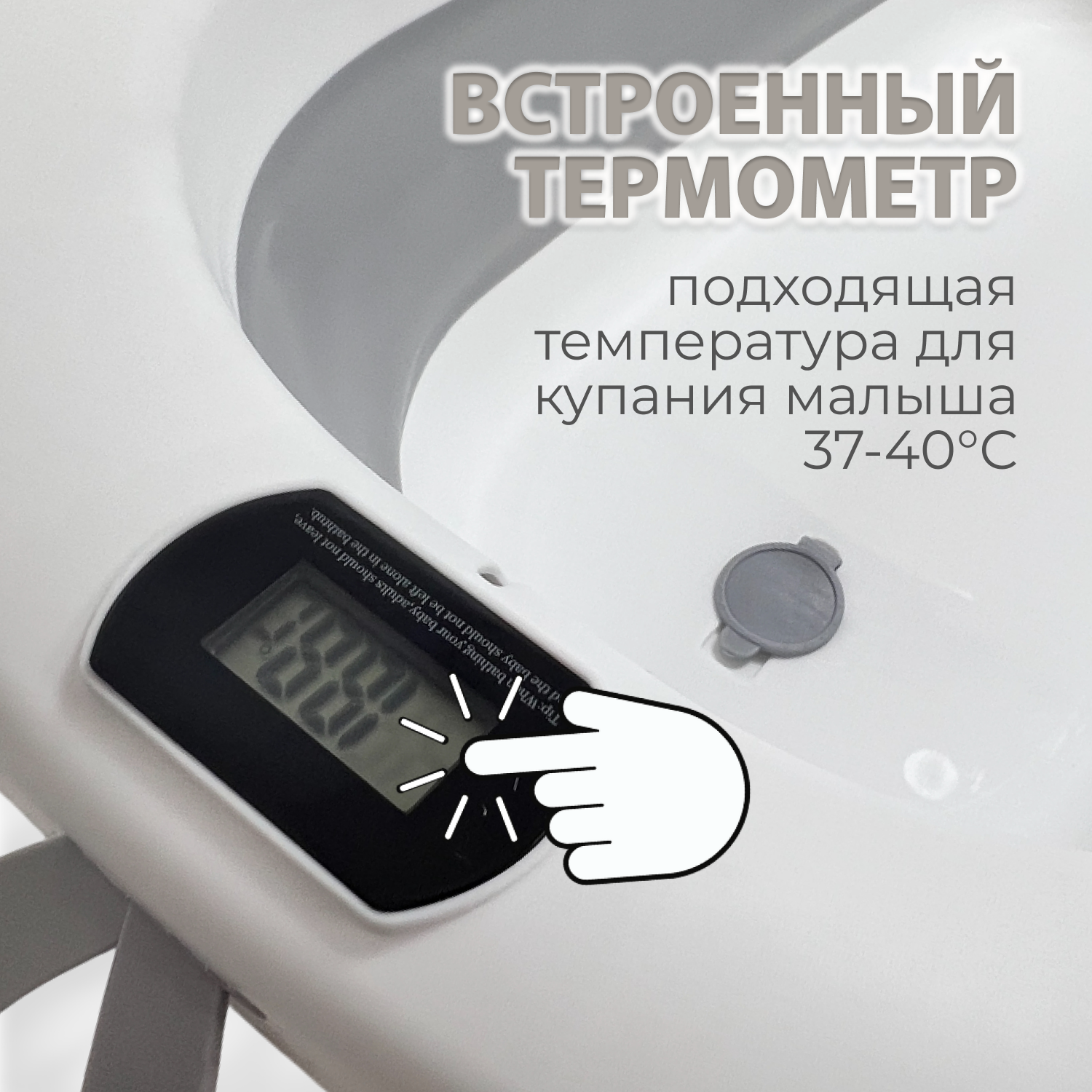 Ванночка оснащена встроенным водонепроницаемым термометром, который помогает точно контролировать температуру воды.