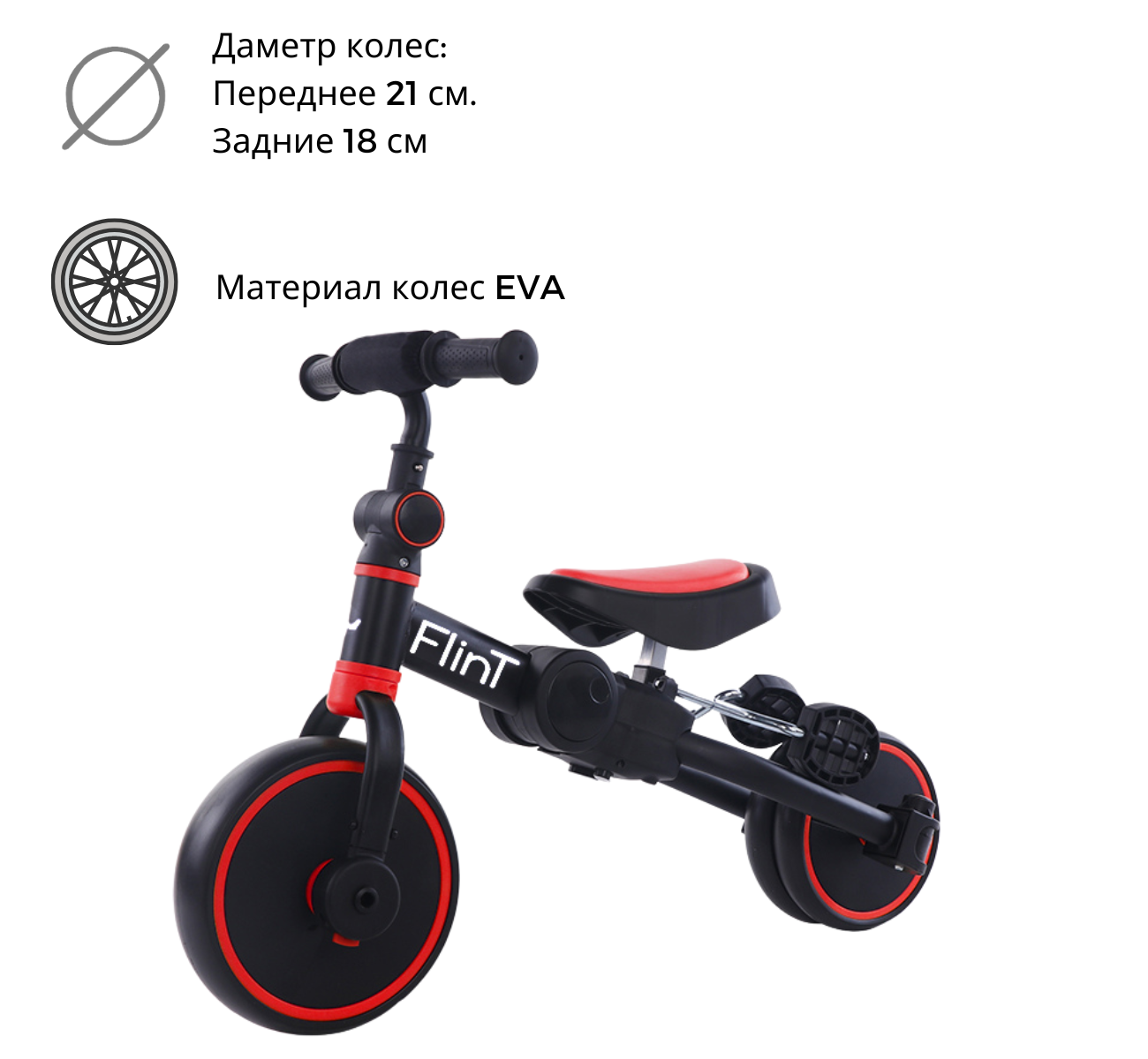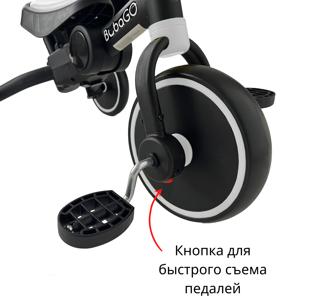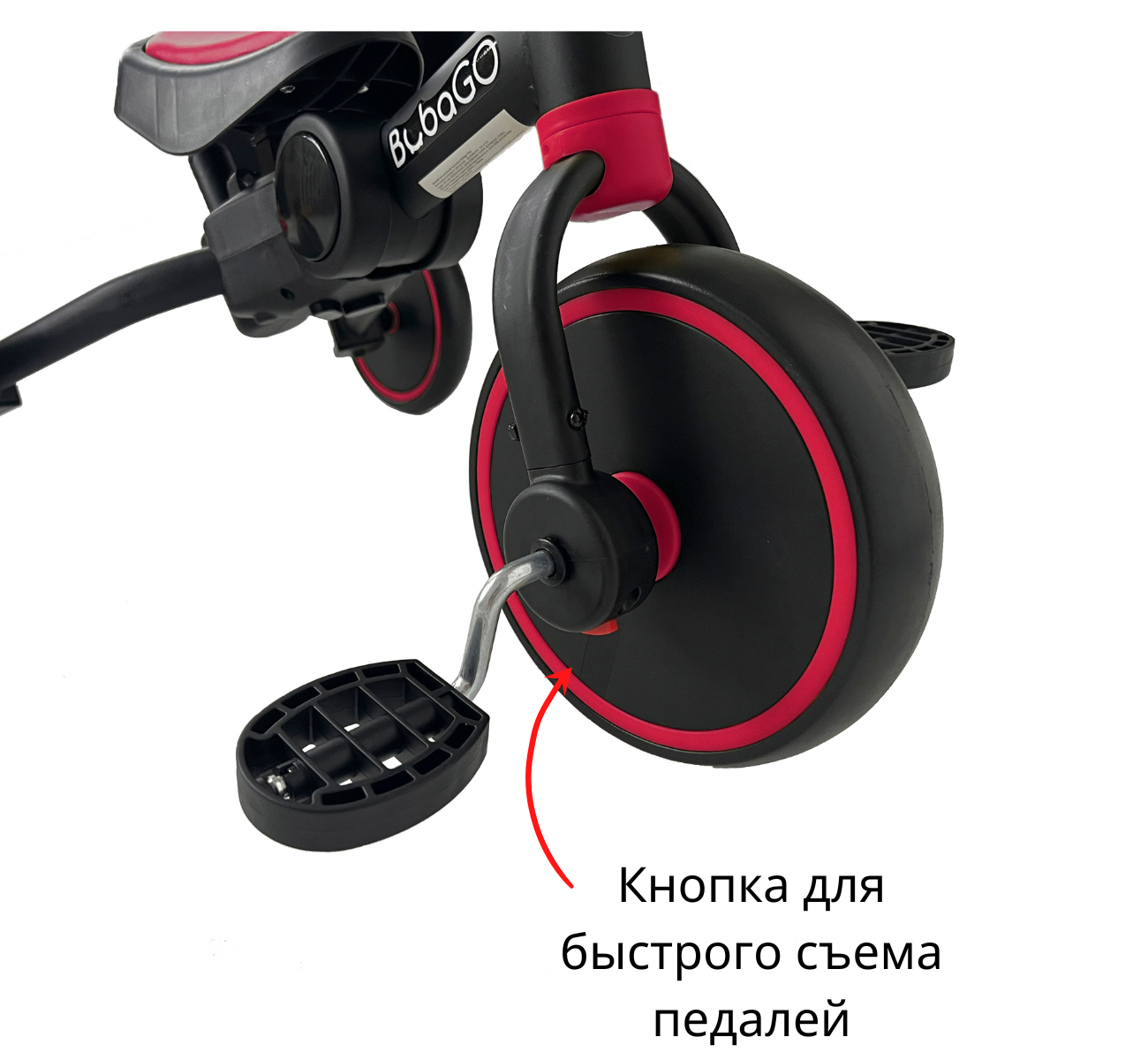 Трехколесный велосипед: Установка педалей превращает беговел в полноценный велосипед, подготавливая ребенка к самостоятельным поездкам, при этом сиденье регулируется для комфорта малыша.